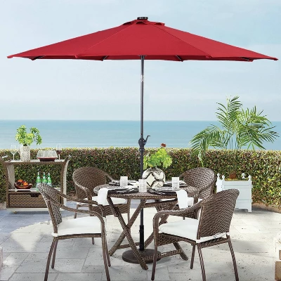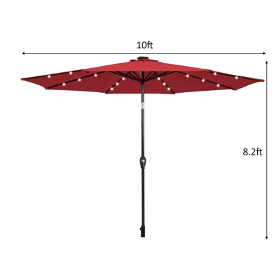 This 10ft patio solar umbrella with crank and LED light is perfect for decorating the area around your house and keeping it with your family. Built-in 24 solar LED lights, can run for 6-7 hours. A 1.5ā diameter iron pole and 8 sturdy ribs provide strong support . By the way, the crank allows you to effortlessly open and close the umbrella in seconds.
