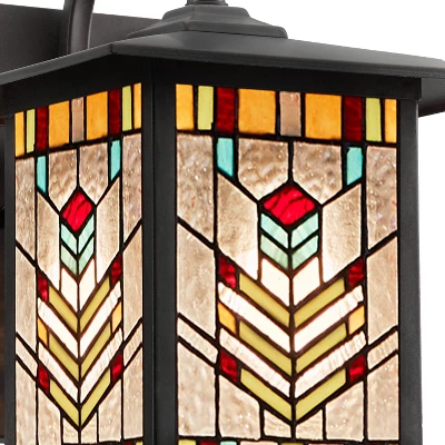 Update your homeās exterior with the charming, warm glow of the 1-Light Mission Style Outdoor Wall Lantern Sconce Oil-Rubbed Bronze from River of Goods. This light sconce features a traditional lantern design with a bronze look for sleek appeal, while the shade is crafted using cut and stained glass in yellow, orange, clear, teal and red hues. A geometric pattern creates a charming look you’ll love, and the glass is oil rubbed to help prevent scratches. The housing is made from durable metal to lend lasting use and an authentic look you’ll appreciate. Whether you mount it near an entryway or your backyard patio, this stained glass lantern is sure to bring elegant charm and extra character to any space.