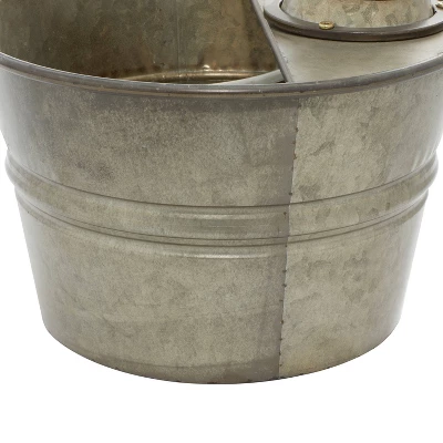 A creative way to add a welcoming look with bold design into any space in your home. Soothing to listen to and even more soothing to see, this fountain is a great way to add a relaxing calm atmosphere to your home. This nifty garden fountain is ideal for farmhouse, vintage, and rustic-themed living spaces. This item ships in 1 carton. Suitable for indoor and outdoor use. Some assembly required. This is a single gray colored outdoor floor water fountain. Farmhouse style.