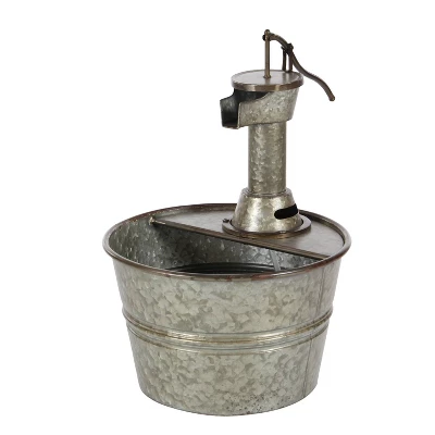 - •This decorative fountain has a cylindrical metal basin and features a hand water pump inspired metal valve