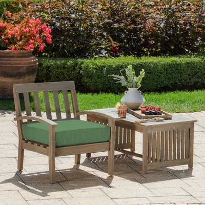 The Arden Selections Outdoor Deep Seat Bottom adds an element of relaxation and fashion to your outdoor deep seat, so you can relax in a space and style that is all your own. This cushion measures 24″ W x 24″ L x 5.75″ H so it can fit a variety of deep seat styles. Our printed Polyester outdoor fabric is fade resistant and offers easy cleaning with just soap and water. Inside this outdoor cushion is patented 100% EverLuxe polyester fiberfill to help it retain shape and provide long-lasting comfort during outdoor use. This outdoor cushion is UV treated and is intended for use on your patio or deck; however, we recommend bringing it indoors when it rains or when not in use to preserve its lifespan and keep it looking beautiful.