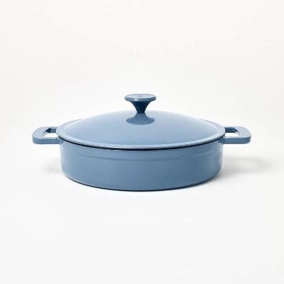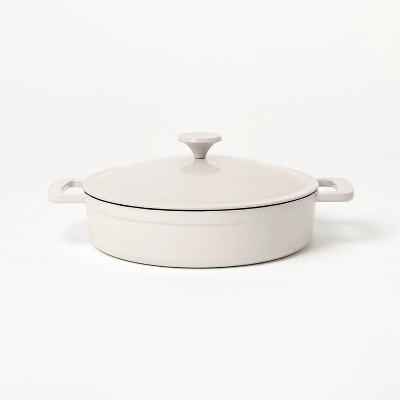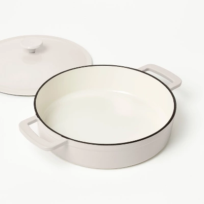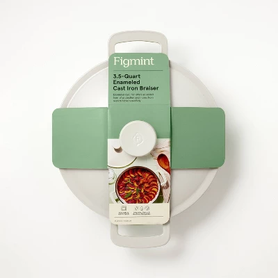 Elevate your cookware with the functional, modern style of the 3.5-Quart Enamel Braiser from Figmint™. Made from cast iron with an enamel finish, this braiser features extended handles for lifting after cooking, making it easier to transport dishes from kitchen to tabletop for serving. The versatile 3.5-quart braiser comes complete with a matching lid for covered cooking and storage, and it’s induction, gas and electric stove compatible and oven safe up to 500 degrees.