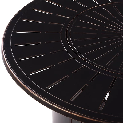 - This premium fire table set has a black antique copper finish applied via durable powder coat