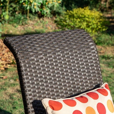 This chair from Captiva Designs is designed and constructed according to the ergonomics. The armrest ,3 steel bottom brackets and triangle structure supports the stability. Ergonomic curve back offers the extra comfort when you sit on it.Black and selective all-weather PE rattan and powder-coated steel frame jointly present the elegant and graceful look. It serves perfectly for outdoor or indoor.