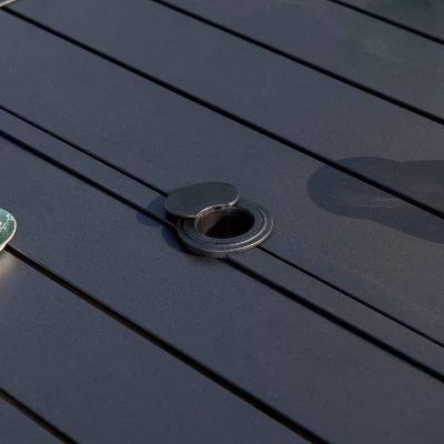This black steel table offers comfy feeling when it serves as a dining table from Captiva Designs.It accommodates 6 seats around.The steel metal is powder-coated and strong enough for a long time serving.Classic pattern design gives elegant and beautiful look.It is a perfect choice for outdoor and indoor applying.