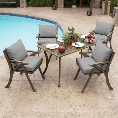 - Cushion Dimensions – Back: 17″ L x 23″ W x 5″ H, Bottom: 21″ L x 21″ W x 4″ H