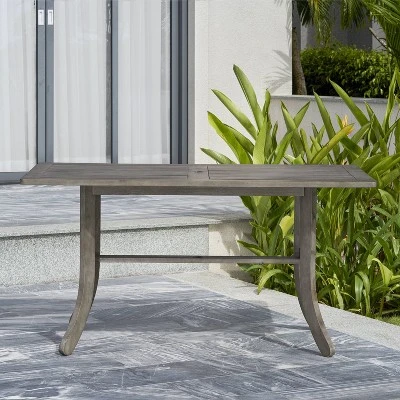 The combination of traditional and modern construction of the Kyrstin Grey-washed Farmhouse Hardwood Patio Dining Table for 6 Seaters is designed for family living outdoors and is perfect for outdoor spaces at any time of the year .Manufactured from 100% Acia hardwood, native to Australia and Asia, used in construction to produce high quality weather resistant furniture.Each edge of this table is hand scraped and Grey-washed to look like an old heirloom, adding a great look to your lovely garden or patio dining areas.