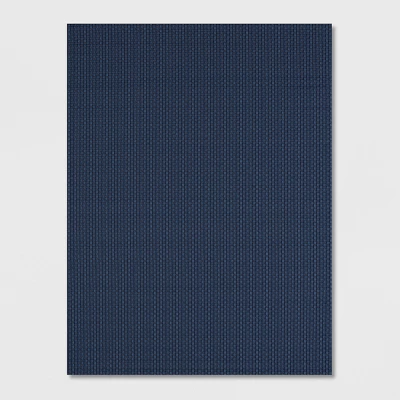 - A blue basket weave outdoor rug
