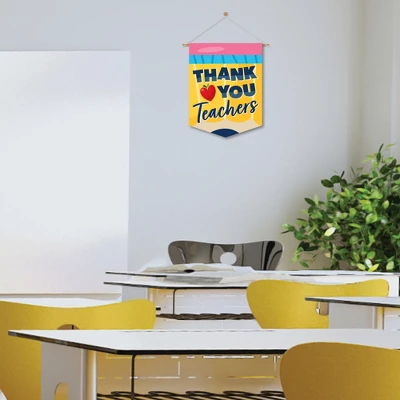Thank You Teachers Garden Flag INCLUDES 1 polyester fabric material garden flag in a vertical pennant shape that measures 12 inches wide and 15.25 inches tall. (Flagpole Not Included) Cute Decor: Welcome houseguests or students with this weather resistant We Love Our Teachers Garden Flag. Printed double-sided, Thank You Teachers – Teacher Appreciation Party Garden Flag looks great placed close to your home, added to flowerpots, or displayed next to your favorite garden gnome decoration. Yard & Home: Thank You Teachers Garden Flag is machine washable and fade-resistant, allowing you to easily display in your outdoor lawn or inside your home or classroom for a fun Teacher Appreciation Party decoration. The small and cute size helps make this a great housewarming gift for a loved one’s deck, patio, porch, or yard. High-Quality Supply: We Love Our Teachers Garden Flag is professionally printed double-sided on 100% polyester material. With a 1.625-inch flagpole opening, easily & quickly display the vibrant Thank You Teachers Garden Flag. Please Note: Flagpole Not Included – will fit most standard-sized garden flag stand flagpoles. Printed In The USA: Thank You Teachers outdoor lawn and home Garden Flag is designed and manufactured at our Wisconsin facility using materials that are Printed in the USA – Fabric Flag Made in China.