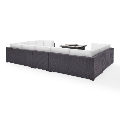 Entertaining outdoors is effortless with the Biscayne 6pc Sectional Set. The extra-large sectional sofa has a durable powder-coated steel frame covered in beautiful all-weather resin wicker. Each seat is topped with lush dyed yarn polyester cushion covers, designed to provide comfort and withstand the elements. With its tiled stone top and lattice panel base, the fire table is a stunning centerpiece for the set. Gas controls and a rack for a propane tank are located inside the table’s base, keeping them close at hand but out of sight. Craft your own personal backyard hideaway with the Biscayne Sectional Set.