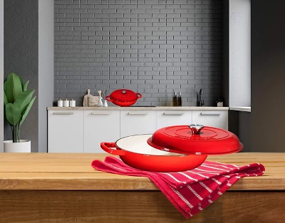 Bruntmor 160 Oz Enamel Cast Iron Dutch Oven With Handles And Lid, Bruntmor Cast Iron Crock Pot is the perfect addition to your kitchen. This nonstick cookware is oven and heat safe up to 500°F (200°C) and distributes heat evenly. The enamel coating prevents food from sticking and prevents bare iron from reacting to the acids in food. The cast iron bakeware keeps your food warm for hours and is available in a variety of beautiful colours and styles to suit any kitchen. This enamel cookware covered with cast iron comes in a variety of gorgeous colours and styles to suit any kitchen!