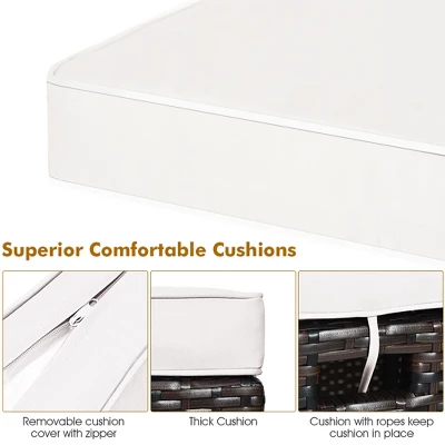 - Lightweight and Convenient Ottomans: Crafted with PE rattan and premium steel, the ottoman is solid yet lightweight to maneuver it easily from one place to another. What’s more, the ottoman has built-in hollow-handle which plays 2 roles. Besides, the cushions can be fix ed to the ottoman by tying it with the ropes. This prevents the cushion from slipping from its place.