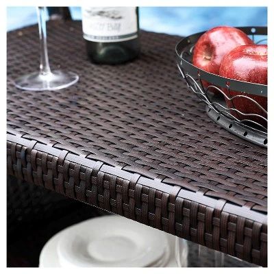 Bring bar entertaining outside with the Outdoor Bar Cart from Crosley. This wheeled cart offers rolling convenience to the poolside or patio with a wide serving surface and open storage below for ice buckets and liquor. Steer with the side handles, or use them for a handy towel bar. Constructed of woven weather-resistent wicker over powder-coated steel, nothing can get between this sturdy bar cart and the next outdoor happy hour.