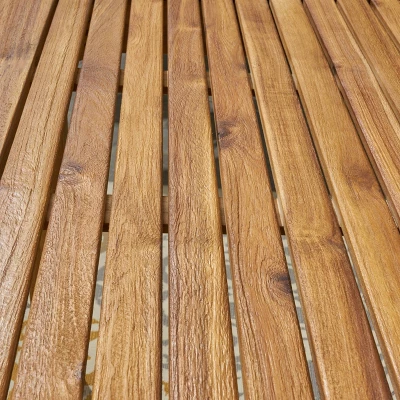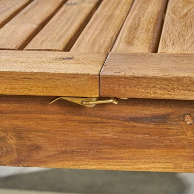 ACACIA WOOD TABLE: This durable hardwood is a solid, heavy frame that naturally withstands the elements and resists wear and tear. This includes an umbrella hole when expanded.