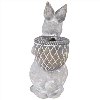 Celebrate the bounty of springtime with this almost foot-and-a-half tall bunny rabbit who happily hops into your home or garden decor with a characteristic basket full of bounty! Cast in quality designer resin with a rough, faux stone finish to replicate its soft fur, this handsome hare is a Design Toscano exclusive to be beautifully displayed year-round. Optionally, dried or silk flowers can be added to his basket. 10″Wx6½”Dx16″H. 6 lbs. Basket: 4¼”Wx4¼”D.