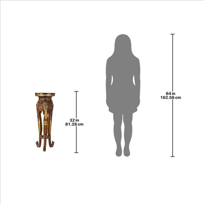 A trio of elegantly long elephant trunks gracefully bend to create the perfect perch for a glamorous Toscano statue or your favorite collectible. Cast in quality designer resin and painstakingly hand-painted to replicate faux wood with gold accents, our pachyderms are exotic denizens to highlight your tasteful decor. 12″dia.x32″H. 22 lbs.