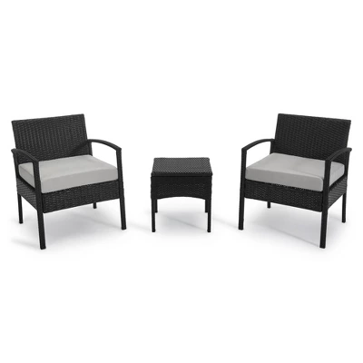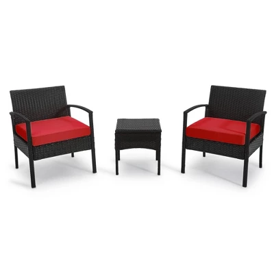 This 3-piece seating group has a functional yet compact design, it fits any of your patio, porch, balcony or even indoor layout. A wide armchair allows more weight capacity and comfort. All-weather resin wicker plus powder-coated steel frames paired with water-repellent cushion covers ensure it’s long-lasting. It would be quite a leisure to enjoy a cup of coffee with your friend or purely on your own on a weekend afternoon.
