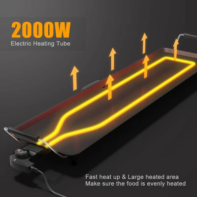 - 【INSULATED HANDLES & NON-SLIP FEET】There are 2 handles on each side with insulated cover for convenient moving without heating or burning your hands. Furthermore, our teppanyaki table grill is equipped with 6 anti-slip feet, which provides more stability and protect your table from heat meanwhile.