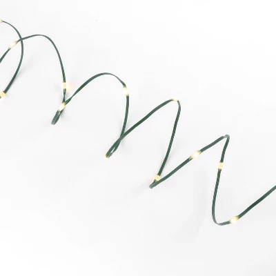 Light up your neighborhood with this 50-ft long Micro LED string lights! With 150 warm white LED lights spaced 4-inches apart, on a green wire you will be able to dress up your home or yard with holiday cheer! You can connect up to 4 of these light strings together. 9-ft long green lead wire with outdoor UL adapter.