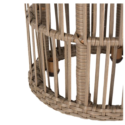 Designed for maximum versatility and value, this petite concrete indoor / outdoor side table packs a powerful punch. Its synthetic rattan cover boasts style while its invisible aluminum frame lends substance to any outdoor entertaining area or living room. The solid flat concrete top serves as the perfect base for a tray of drinks and its neutral color makes it easy to style. The Fane Modern Concrete Side Table requires assembly and has a weight capacity of 10 pounds.
