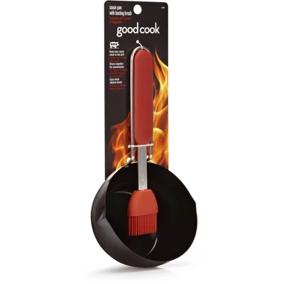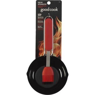 Our GoodCook BBQ Sauce Pan with Basting Brush is a popular combination around the backyard grill. Make your secret recipe right on the fire next to your meat if you want, or just keep it warm and handy nearby. The silicone basting brush is heat resistant to 400°F, has a durable stainless steel collar and a non-slip textured handle. The brush handle fits neatly into the handle of the sauce pan, making both essential BBQ tools easy to store together and available to you at all times. The nonstick sauce pan is easy to clean, important when dealing with sticky BBQ sauce.