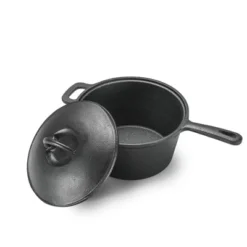COMMERCIAL CHEF Pre-Seasoned Cast Iron 2.0 Qt Saucepan With Lid, Black