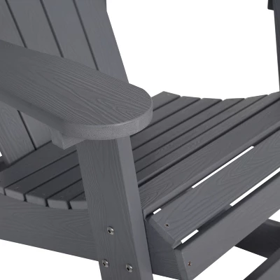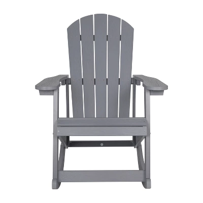 Adirondacks are renowned for their traditional style, and this modern rendition retains the classical design while adding 21st century function. The roomy vertical slatted back is equaled in relaxation by the well-shaped armrests and smooth curved runner rocking construction. Made of polyresin that is UV treated and able to withstand all-weather outdoor conditions, but stylish enough for relaxed indoor settings