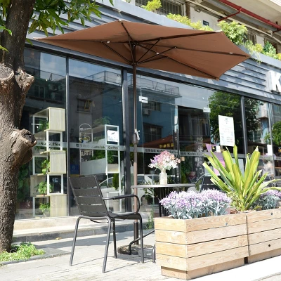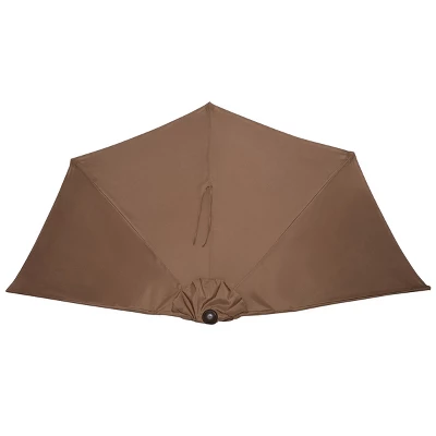 The 9-Foot Half-Canopy Patio Umbrella from Nature Spring uses a hand crank to easily open to shade a small outdoor area at any part of the day. The resilient brown colored polyester fabric of the umbrella has built-in vents and is supported with 5 steel ribs so you can use it against your house on your back deck, patio, balcony, or porch. The powder coated steel pole fits in most umbrella stands, weighted bases, or patio tables (not included) to help keep you protected from the sun’s harsh UV ray’s year-after-year!