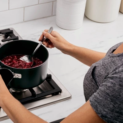 - Lid, handle, and nonstick coating are all oven-safe to 500°F.