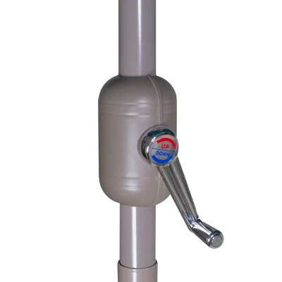 Stay shaded and cool this summer with our moderately sized market umbrella. Ideal for covering a 48-inch or four-person dining set. Features a sturdy, powder-coated aluminum frame with steel ribs, built to last a lifetime. The crank opening and push-button tilt mechanism allows for ease of use. Features:Umbrella shape: octagon Canopy color: purpleFrame and pole color: brown Diameter of open umbrella: 9′ Height: 8′ Pole diameter: 1.5″ (38mm) Lift: hand crank Tilt: push-button tilt 8 ribs Material(s): 160 gram polyester canopy/powder-coated aluminum pole/steel ribsNote: Umbrella only, base is not included
