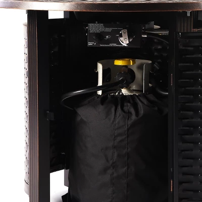 - This premium fire table set has a black antique copper finish applied via durable powder coat
