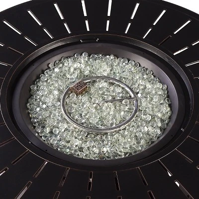 Whether your outdoor retreat is located in the mountains, on the coast, or somewhere in between, this fire table set will extend your evenings with friends and family around the fire. With this addition you can enhance your outdoor setting with even more ambiance and relaxation. This fire table set comes with an Outdoor Aluminum 44 in. Round Fire Table Set with Four Deep Seating Swivel Rocking Chairs, Fire Beads, Lid, Propane Tank Cover and Table Fabric Cover. The dimensions for the fire table are: 44″ L x 44″ W x 24.5″ H, 71.5 lbs. Each chair dimensions are: 28.3″ L x 33.8″ W x 34.2″ H, 29 lbs. The chair seat is 12.6″ H from the seat to the floor.