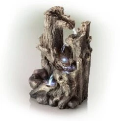 14″ Resin 5-Tiered Rainforest Tree Trunk Tabletop Fountain Brown – Alpine Corporation