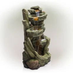 Cascading Stone Tower Fountain With Cool White LED Lights – Alpine Corporation