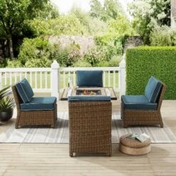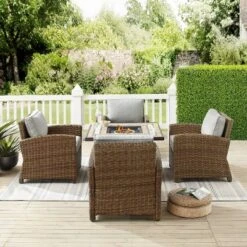 Bradenton 5pc Outdoor Wicker Arm Chair & Fire Table Set – Crosley