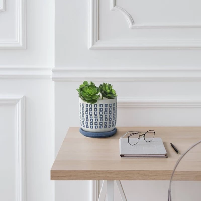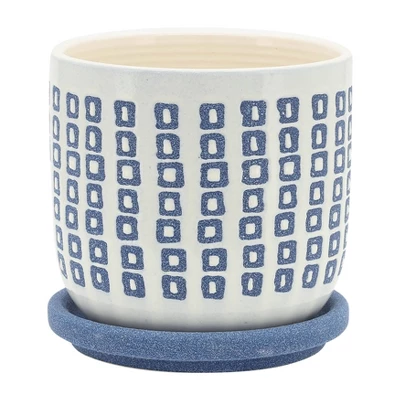 5″ Tiny Squares planter with Blue Saucer. This planter is white in the body, and has blue squares. This planter does have drainage holes. Place your favorite plant in this planter. Great addition to add to your planter collection. Can be placed anywhere in your home.Sagebrook Home has been formed from a love of design, a commitment to service and a dedication to quality. They create and import fashion forward items in the most popular design styles. Backed with years of experience in the textile field, They are now providing a complete Home decor story. the combination of wall decor, furniture, lighting and Home accessories are all coordinated with textiles to provide a complete Home look. Sagebrook Home is committed to providing the best Home décor and accent pieces at value prices.