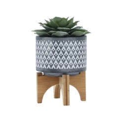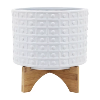 Sagebrook Home Dot Pattern Round Ceramic Planter Pot With Wood Stand White
