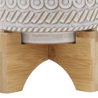 Sagebrook Home With Wood Stand Geometric Ceramic Planter Pots