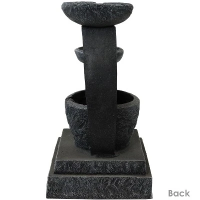 Sunnydaze Decor Sunnydaze Outdoor Modern Cascading Bowls Solar Powered Water Fountain With Battery Backup, LED Lights, And Submersible Pump – 28″ – Black