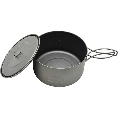 Great for cooking for two in the backcountry, the TOAKS Titanium 1350ml Pot is light enough for ultralight kits, but still heats efficiently thanks to its wide design. The handles fold away for compact storage and includes a mesh storage sack. The lid has a lockable grip with vent holes to let steam escape. Last but not least, the round bottom edge allows for easy cleaning. Why Titanium Cookware? Ultralight, strong, and durable. Corrosion-resistant. Leaves no metallic smell or taste. Most effective material for outdoor gear. Details Material: Titanium (Grade 1 or 2, no coating). Weight with pot and lid: 5.2 oz. Weight with pot only: 4.0oz. Capacity: 45.6 oz. (1350ml) (measured to the top of pot). Ounce and liter marks enable precise measurements. Lightweight and easy to carry. Handles fold away for compact storage. Includes lid with lockable grip and a mesh sack. It can nest TOAKS Titanium 900ml D130mm Pot, TOAKS S 375ml and 700ml pots. It can nest inside TOAKS 2000ml Pot with Bail Handle.