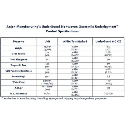 Add an extra layer of protection between your pond liner and soil with the UnderGuard 25- by 30-Foot Wide Geotextile Underlayment Protective Liner.This 25- by 30-foot sheet of multifunctional geotextile underlayer liner provides a barrier of protection when creating new ponds, water features, or landscaping in your yard. Whether you’re building a new retaining wall, adding a beautiful koi pond, or creating a water feature for your outdoor space, this liner will create a more stable base for your new backyard addition. Designed to perfectly enhance soil stability and control erosion, while providing a stable and lasting foundation, you’ll love the added peace of mind this underlayment provides.Preventing air voids between the liner and earth, this liner helps to reduce wear and abrasion and keeps your new feature exactly where you want it. The needle-punched geotextile fabric with a random, 3-dimensional pore structure and felt-like consistency allows for superior drainage, while the polypropylene construction remains unaffected by hydrocarbons and freeze-thaw cycles while diffusing gas and fluid build-up.Enjoy peace of mind that your project will remain stable for years to come with the 25- by 30-Foot Wide Geotextile Underlayment Protective Liner from UnderGuard.