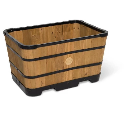 Make a statement! Our friends at VegTrug came up with this expanded new take on the traditional whiskey barrel planter. Same clean construction, wooden staves, metal bands, and rot-proof bottom in a classic trough shape.