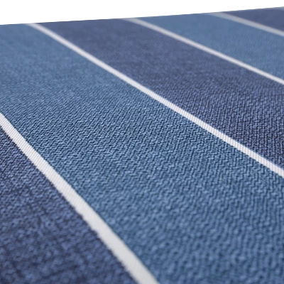 Add a classy touch to your porch or patio with the sharp look of this outdoor bench cushion. With a linen-like fabric texture, its bold stripes are in two alternating shades of blue and highlighted with thin white stripes. Made of 100% polyester fade-resistant fabric. Additional features of this outdoor bench cushion include square corners, 14″ ties and recycled polyester fill with a zippered closure for easy removal. Also suitable for indoor use.