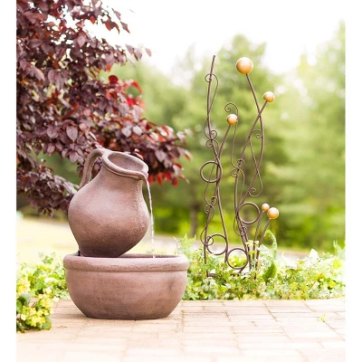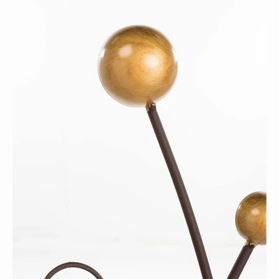 This Gold and Brown Abstract Metal Trellis is an eye-catching combination of wrought iron circles, arcs and curlicues topped off with five golden spheres. Sure to make an artistic statement in your landscape, this iron garden trellis is far removed from your everyday lattice or bamboo stakes. Our trellis is so lovely, in fact, that you might find yourself keeping your plants away from it, though they will be eager to weave their way through the intricate twists and turns. Two long, sturdy stakes ensure secure placement of this wrought iron garden trellis which will look equally lovely against a wall or free-standing in a flower bed. Wind & Weather Exclusive Design.